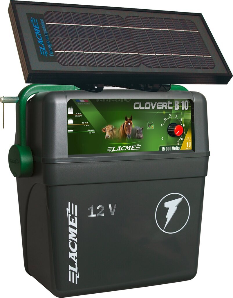 Ohradníkový akumulátorový zdroj CLOVERT B10, 1J 12V se solárním panelem 7,2W