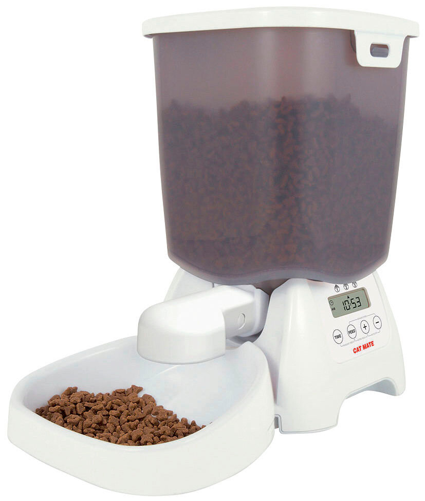 - automatický zásobník až na 3 kg suchého krmiva s programovatelným LCD ovladačem