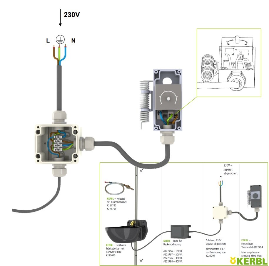 • a termosztát automatikusan ki- és bekapcsolja a fagyvédelmi elemeket