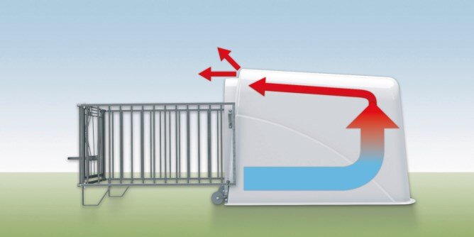 Tento přístřešek pro telata má také optimální ventilační systém, který reguluje vnitřní klima bez průvanu.