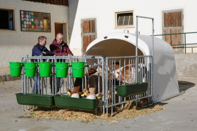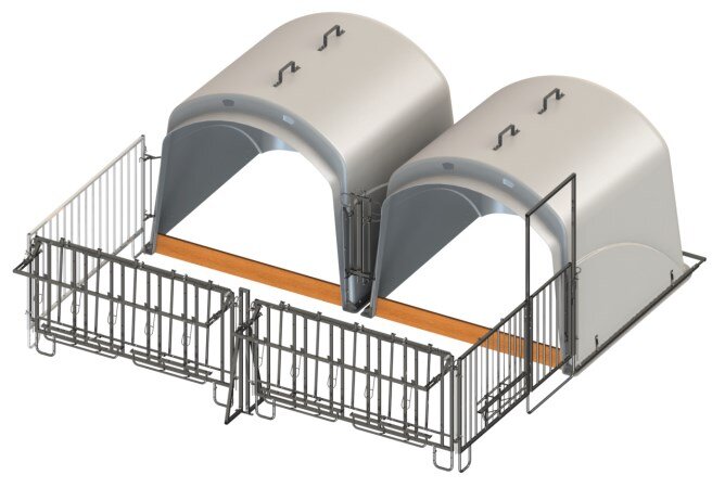 Doplňkový výztužný rám kolem přístřešku ro telata garantuje maximální stabilitu.