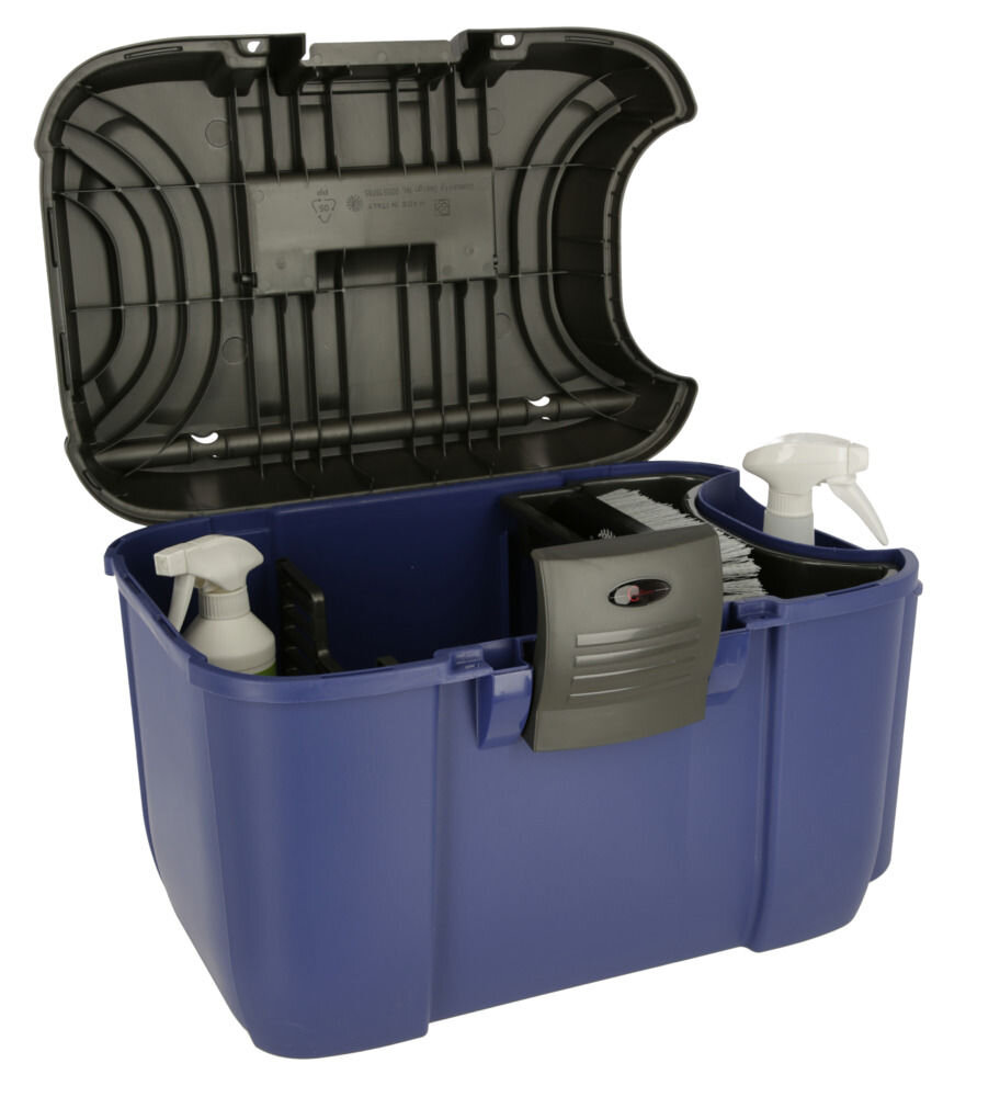 Velký plastový uzamykací box na čištění s možností zatížení váka až 120 kg. Box vyniká mnoha detaily, které usnadní skladování všech potřeb pro čištění koně.• perfektní úložný prostor pro lahve na vnější straně