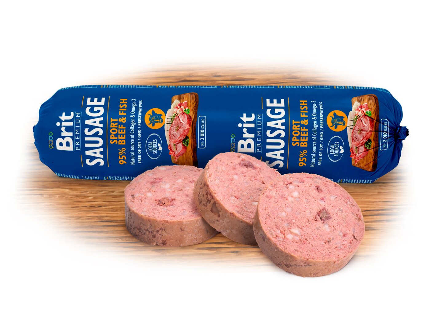 Brit Sausages jsou jedinečnou kombinací skutečných kousků masa a lehkého, výtečného paté. Vysoký obsah masa 95 % zajišťuje skvělou chuť a výbornou stravitelnost. Široká škála rozmanitých chutí nabízí příjemné zpestření psího jídelníčku a je vhodným doplňkem ke granulím, BARF stravě i vařenému masu.