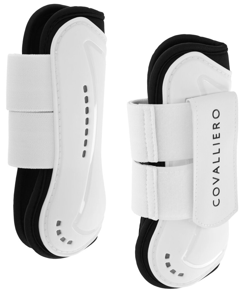 Chrániče Covalliero poskytují koni vynikající ochranu před poraněním a odíráním nohy koně během práce na jízdárně i vyjížďkách. Jsou vyrobeny z odolného materiálu, vypodložené měkkým neoprenem a mají robustní zapínání na suchý zip pro bezpečné a rychlé upevnění. Je zajištěna dobrá cirkulace vzduchu.