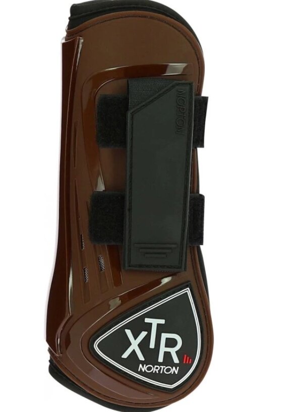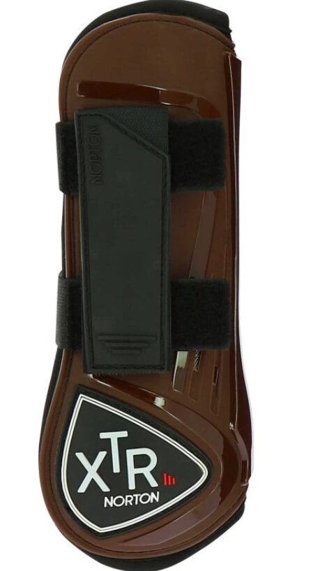 Odolné chrániče NORTON XTR v elegantní hnědé barvě nabízejí spolehlivou ochranu šlach a spěnkových kloubů při tréninku i závodech. Vnější část tvoří pevná anatomicky tvarovaná skořepina, která účinně pohlcuje nárazy, zatímco vnitřní neoprénové polstrování zajišťuje pohodlí a zabraňuje otlakům.