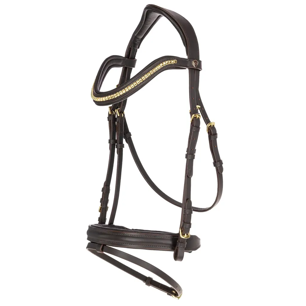 A Covalliero Clincher egy kiváló minőségű bőr kantár, amelyet a ló kényelmét, funkcionalitását és elegáns megjelenését szem előtt tartva terveztek. Angol kombinált orrszíjjal és anatómiailag formázott tarkóval rendelkezik, amely segít egyenletesen elosztani a nyomást a tarkó területén, és növeli a viselési kényelmet.