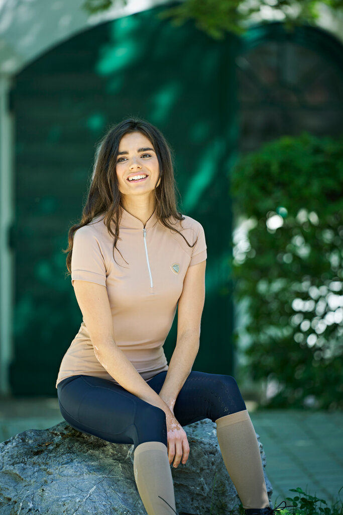 Covalliero S/S 2022 állógalléros póló, bézs, L