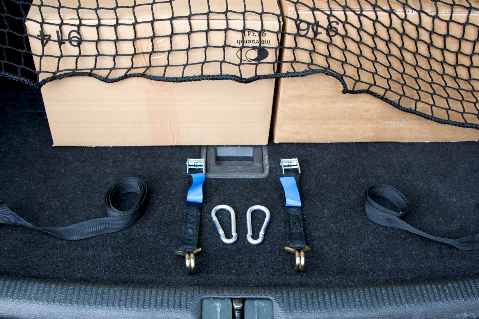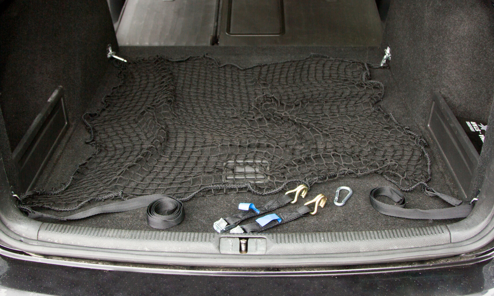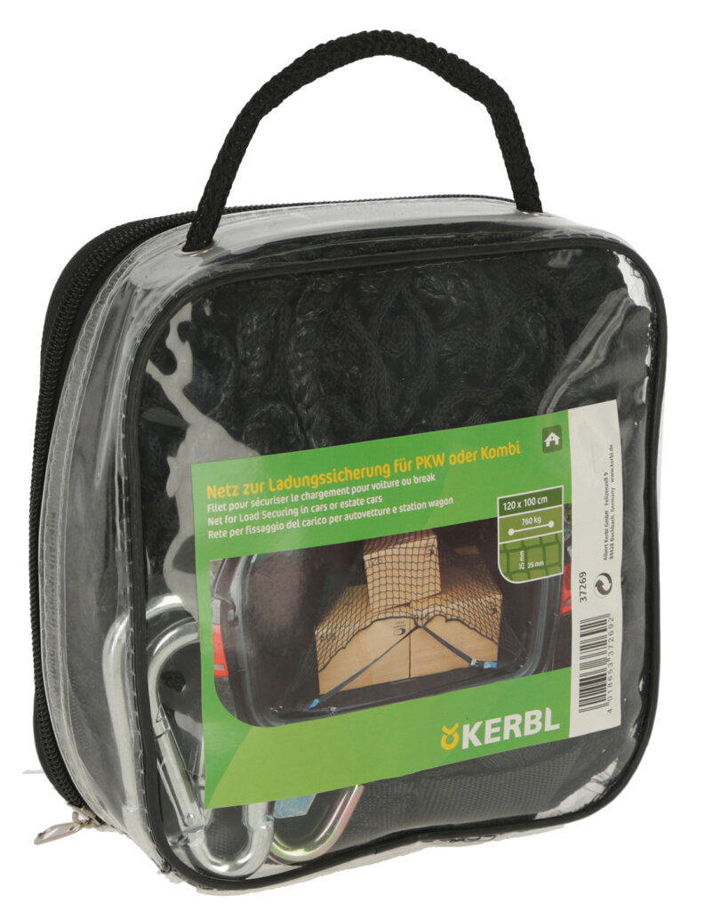 Rakományrögzítő háló személygépkocsihoz vagy kombihoz • nincs többé csomagmozgás a csomagtartóban • egyszerű és gazdaságos • a rendszer maximális terhelhetősége 760 kg-ig • 120 x 100 cm polipropilén háló • 25 mm-es szembőség • megerősített 10 mm átmérőjű szegélyzsinór a biztonságos feszítéshez • varrott rögzítő pántok 100 és 150 cm • 2 karabiner 2 pánttal szállítva: A feszítőzárak segítségével a háló egyik vége a PES pántokhoz rögzül, a másik vége hegyes kampóval rögzül a jármű rögzítési pontjaihoz • praktikus tárolótáskában szállítva az autóban való tároláshoz