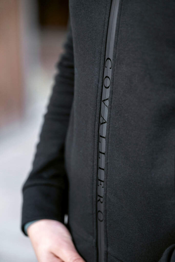 Dámská mikina s kapucí z extrémně příjemného a měkkého materiálu s fleecovou vnitřní stranou, obousměrným zipem s natištěným logem Covalliero, který při rozepnutí a zapnutí dělá zajímavý efekt a 2 bočními kapsami se zapínáním na zip.