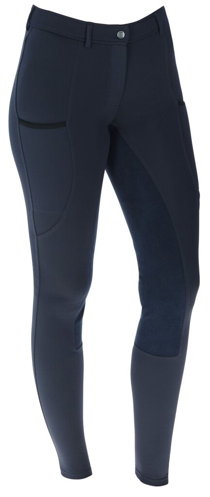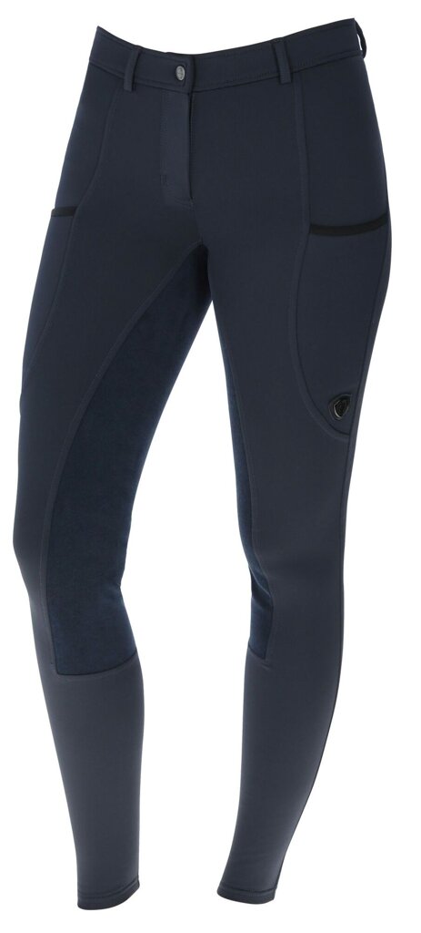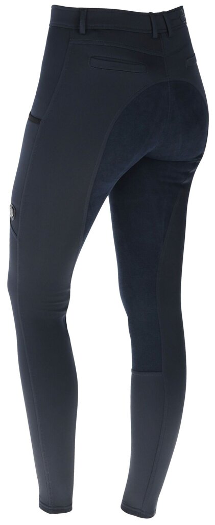 Dámské jezdecké rajtky s celokoženým sedem, z vysoce elastického, prodyšného softshellového materiálu s fleecovou počesanou vnitřní stranou, komfortním pasem s poutky na pásek, dvěma bočními kapsami pro mobil.