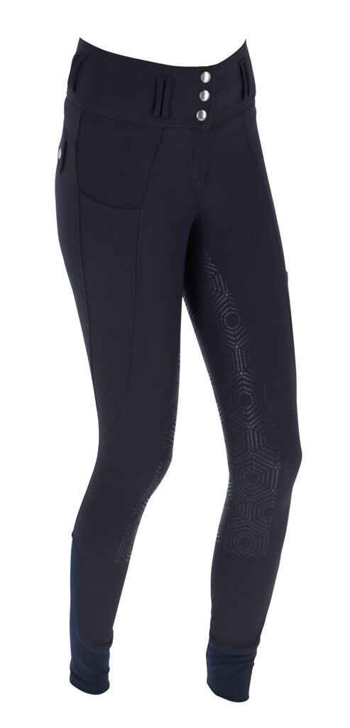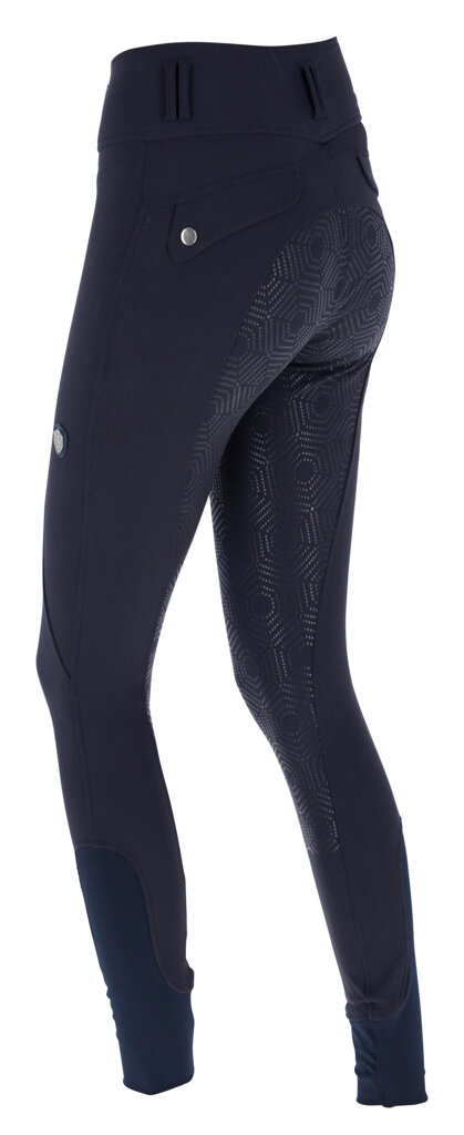 Elegantní dámské jezdecké kalhoty s vysokým pasem s celoplošným silikonovým potiskem CovallieroGrip. Měkký, lehký prodyšný materiál regulující teplotu. Praktická kapsa na mobilní telefon