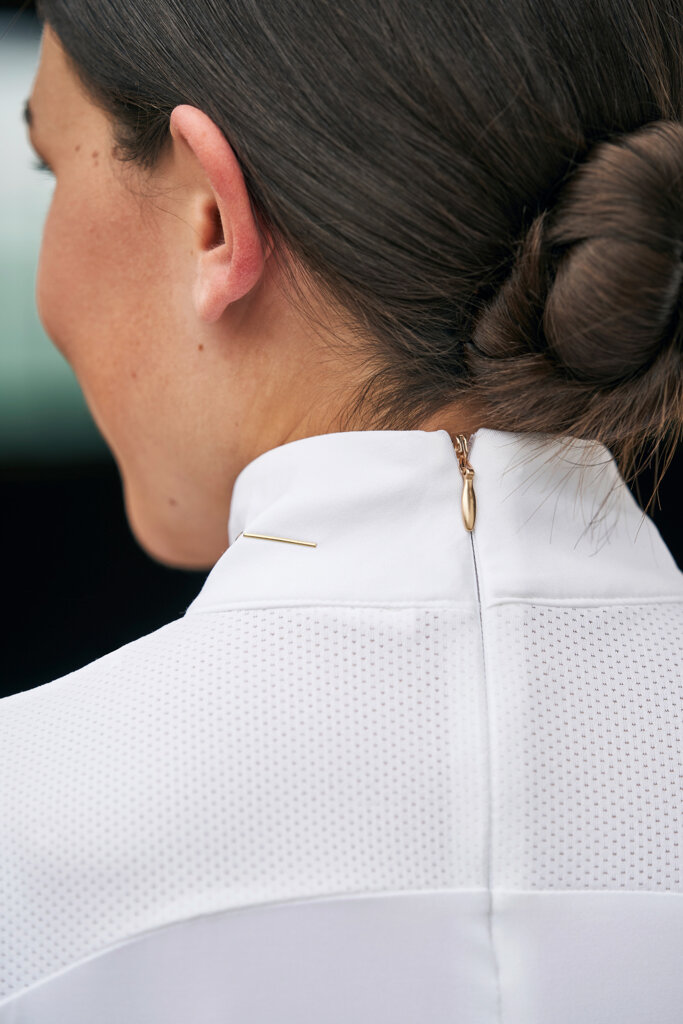 Závodní triko se stojáčkovým límcem se skrytým zipem vzadu. Triko nabízí maximální prodyšnost díky síťovaným vsadkám ve přední i zadní části trika. Střih perfektně obepíná postavu a vysoce elastický materiál přispívá k absolutnímu pohodlí. Decentním prvkem je plastické logo na límečku.