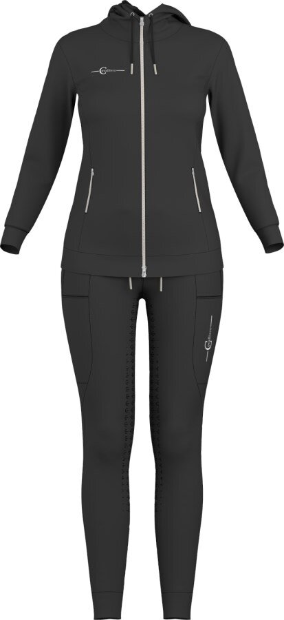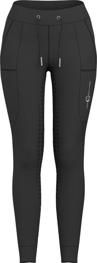 Jezdecké legíny jsou navržené ve stylu sportovních tepláků s kapsami na mobil a další drobnosti po obou stranách. Díky 4směrné elasticitě a extra širokému pohodlnému pasu s ozdobným lemováním perfektně drží na místě bez zbytečného tlaku. Celogrip Covalliero zajišťuje jistotu v sedle.