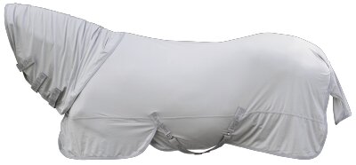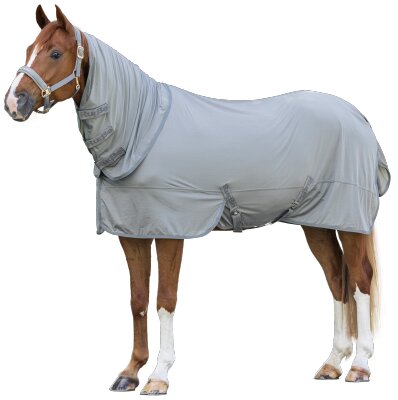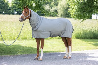 Lehká, prodyšná síťovaná deka proti hmyzu včetně krku. Krk se dá jednoduše odejmout, deka perfektně sedí díky svému střihu a jako pojistka je tu křížové zapínání pod břichem, aby se deka nemohla přetočit.