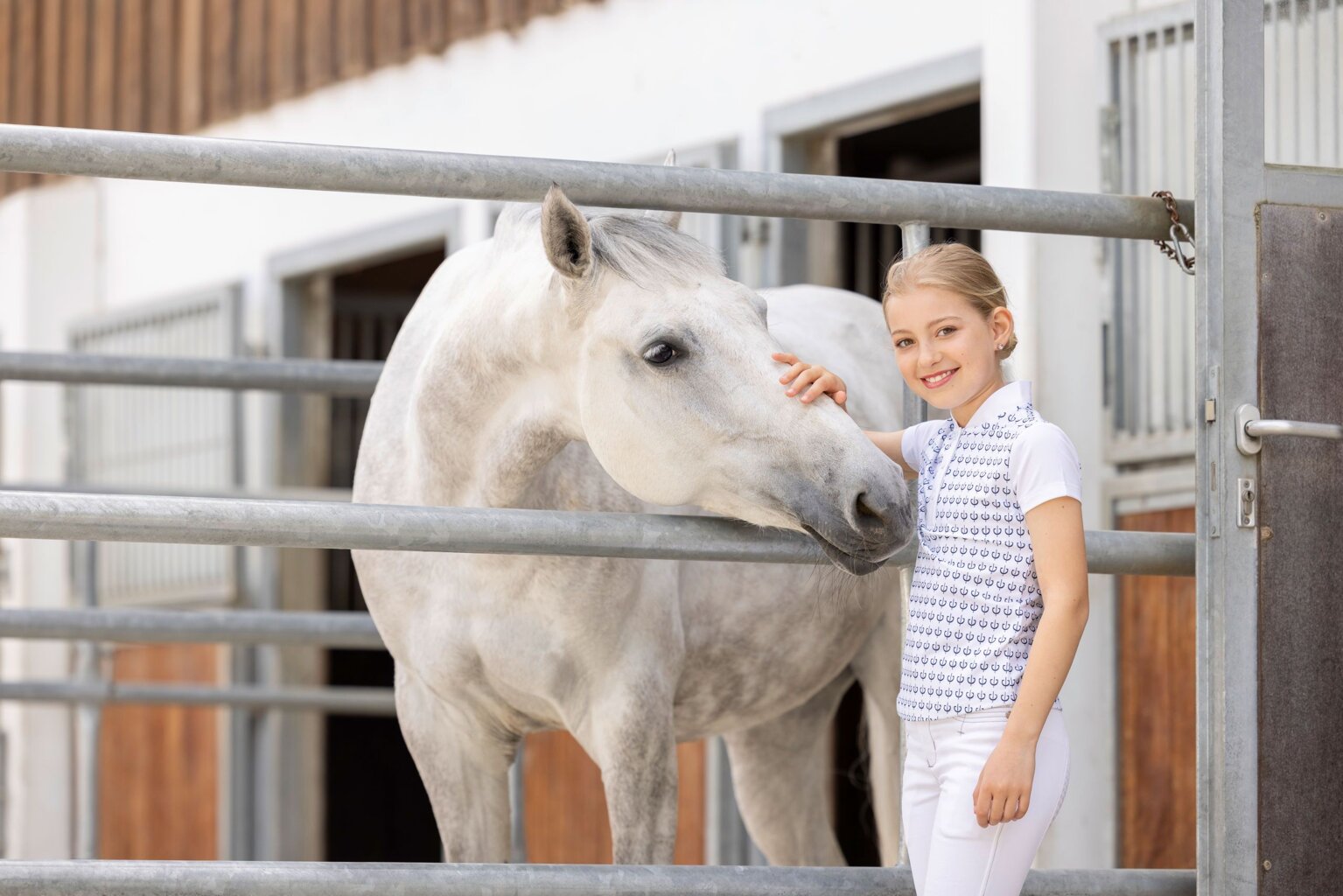 Dětské, jezdecké, závodní triko designovým potiskem, stojáčkovým límcem, díky ¾ zipu se triko snadno obléká. Triko je velmi elastické, lehké a materiál snadno a rychle odvádí pot a reguluje tak teplotu těla.