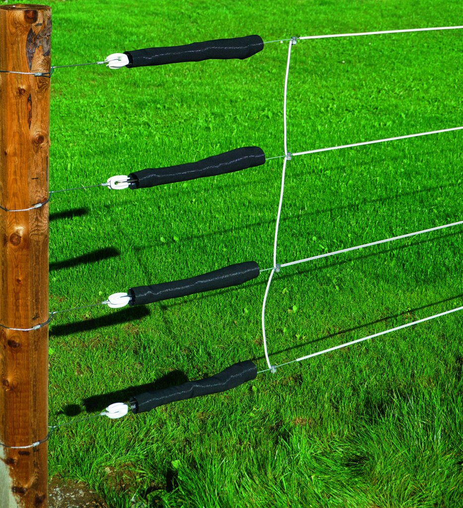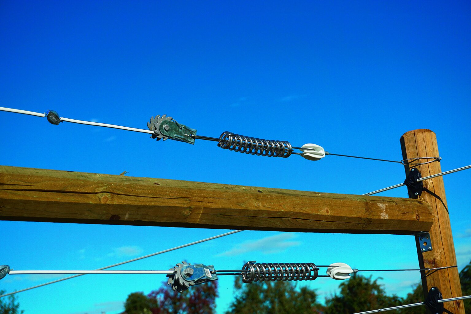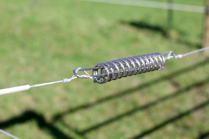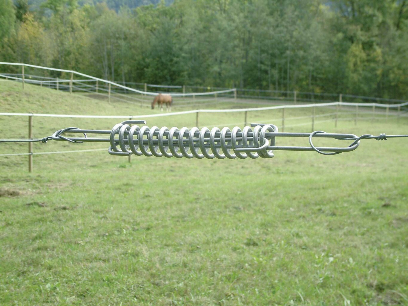 • vyrovnává kolísání teploty, udržuje vodič stále perfektně napnutý (zlepšuje výkon ohrady)