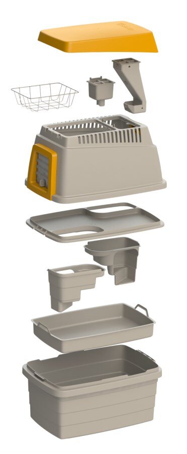 - přídavná mezilehlá police umožňuje použití horní části jako přístřešek na jiném místě nebo jako přepravní box na cestách (např. na návštěvu veterináře nebo na cestu do rekreačního ubytování)