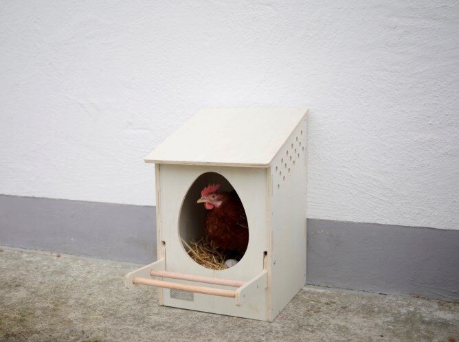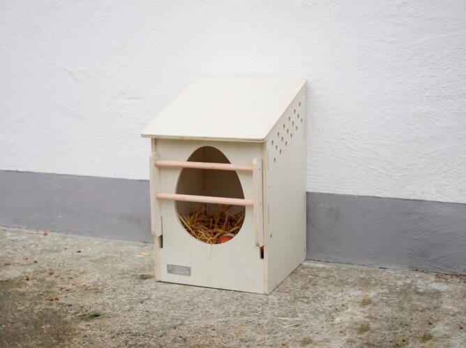 • šikmá střecha brání kuřatům sedět na ní