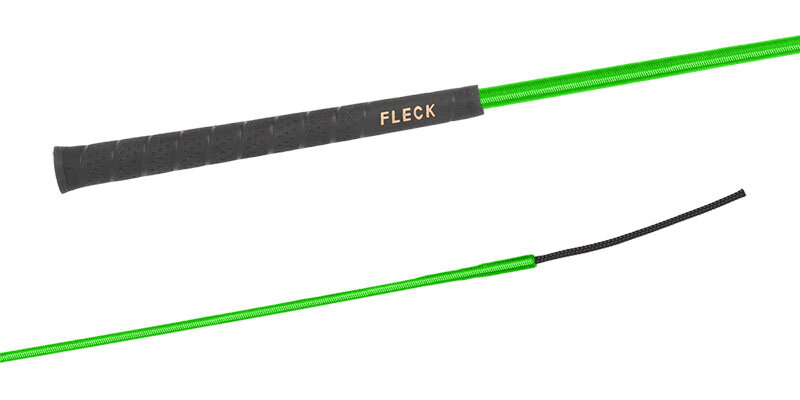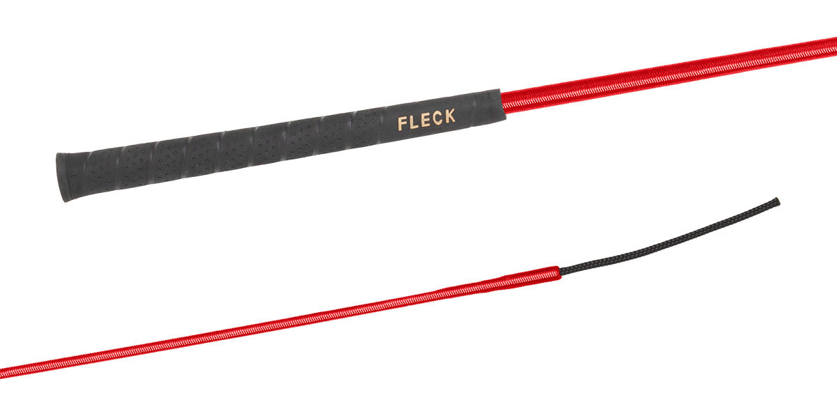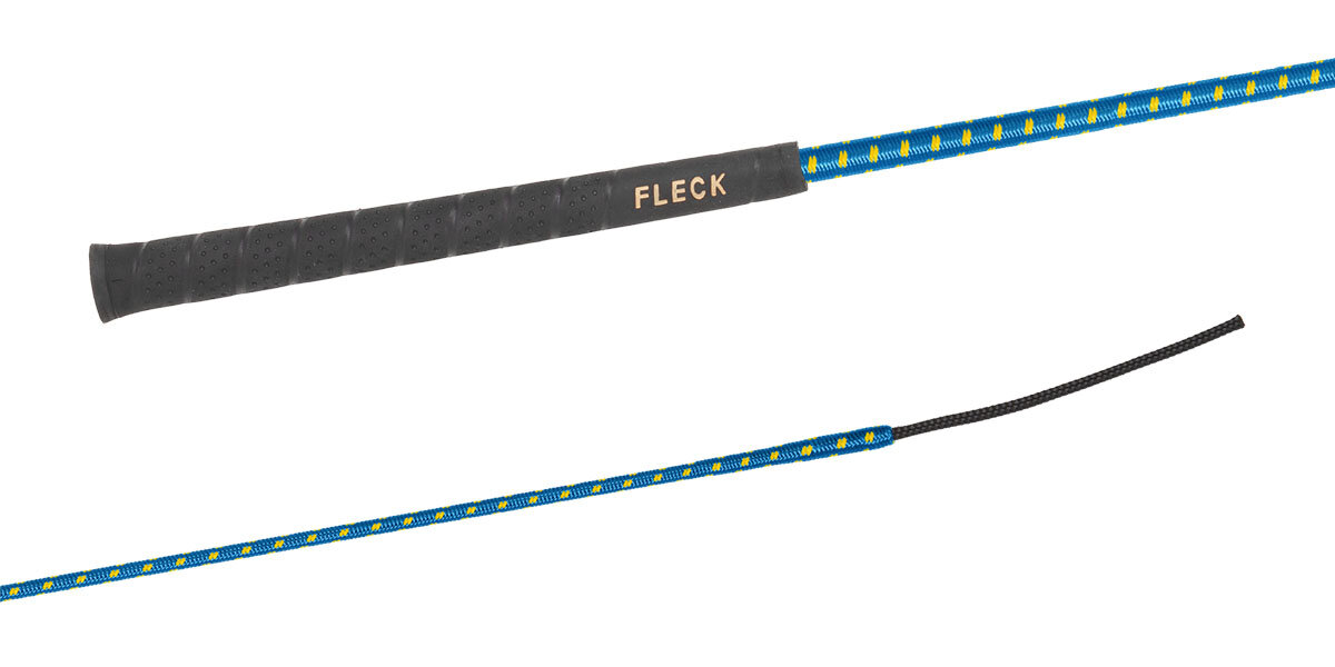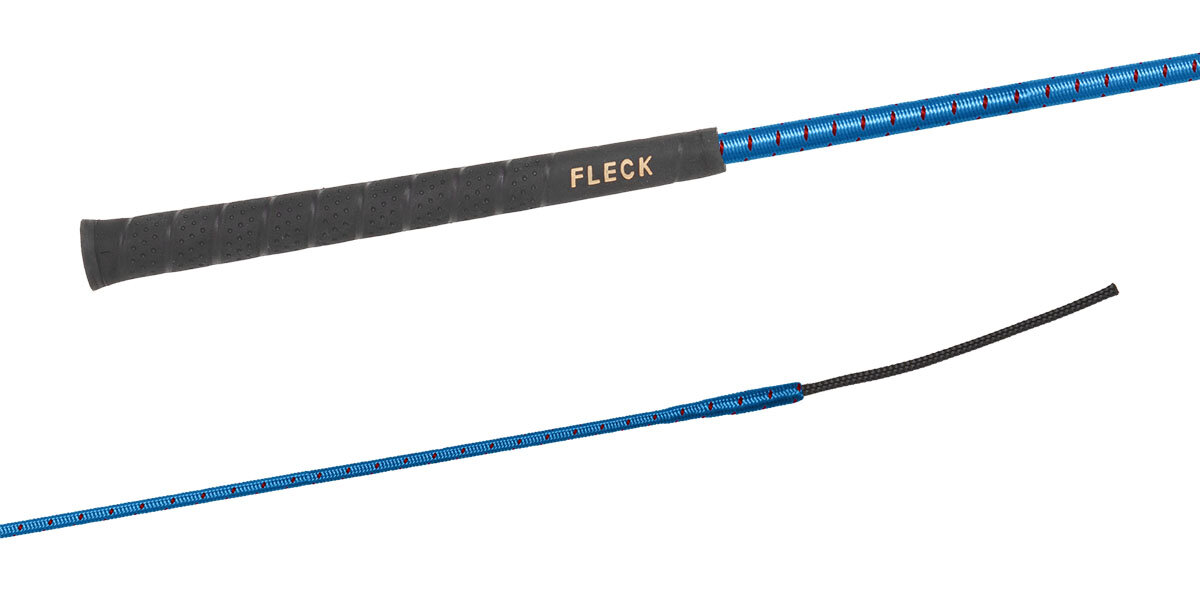 Drezurní bič s barevným nylonovým opletem s neklouzavou a do ruky příjemnou FLECK-grip rukojetí.