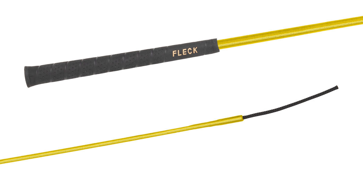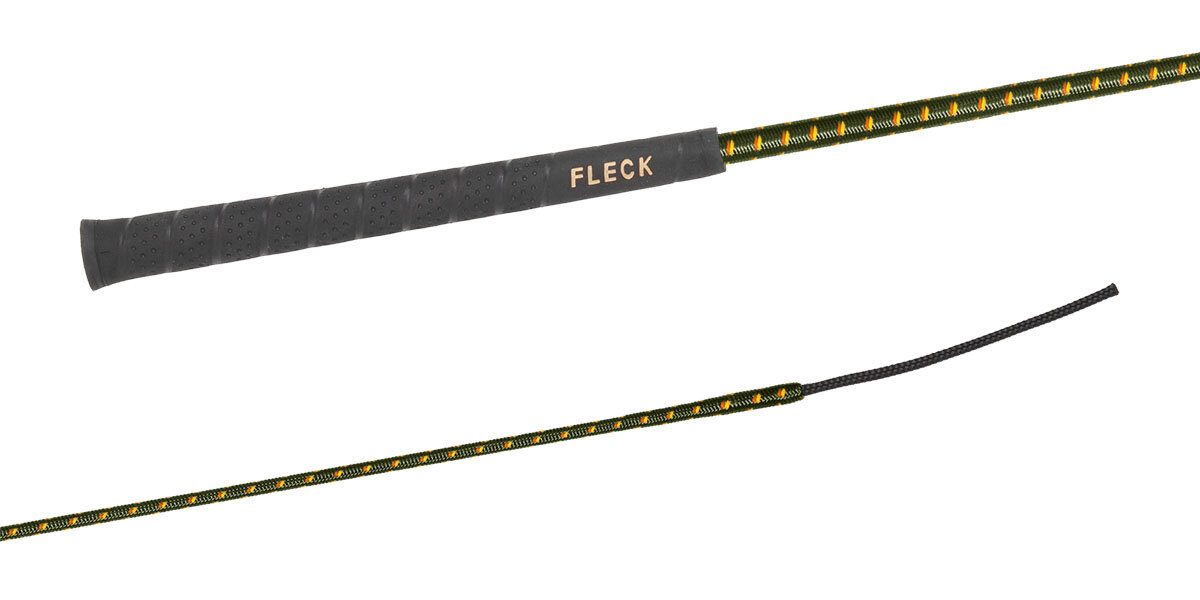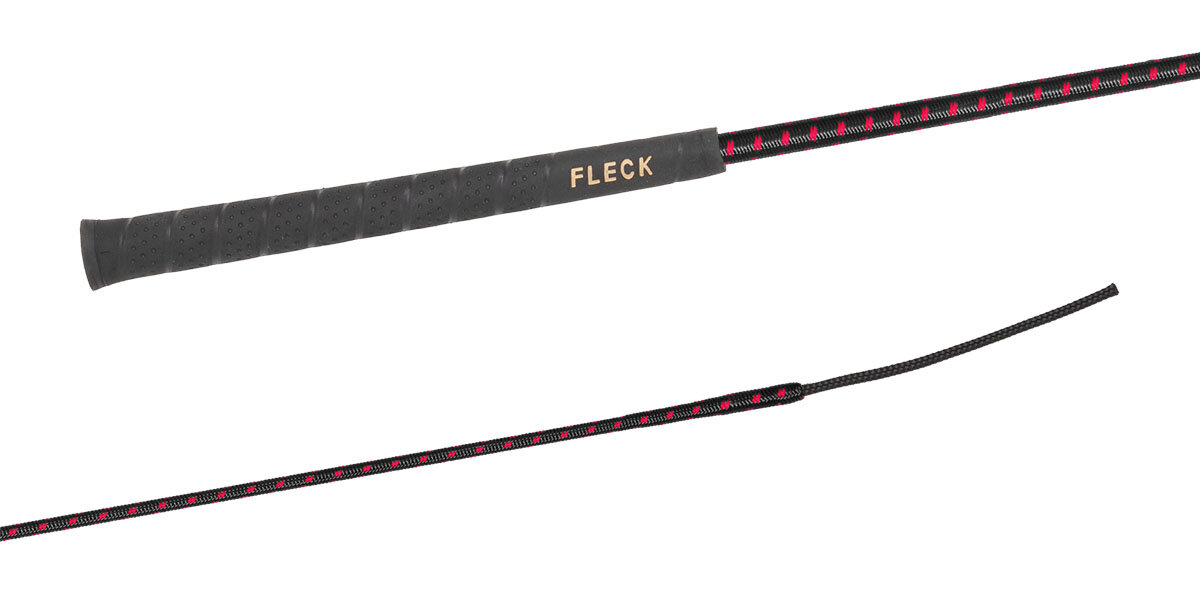 Drezurní bič s barevným nylonovým opletem s neklouzavou a do ruky příjemnou FLECK-grip rukojetí.