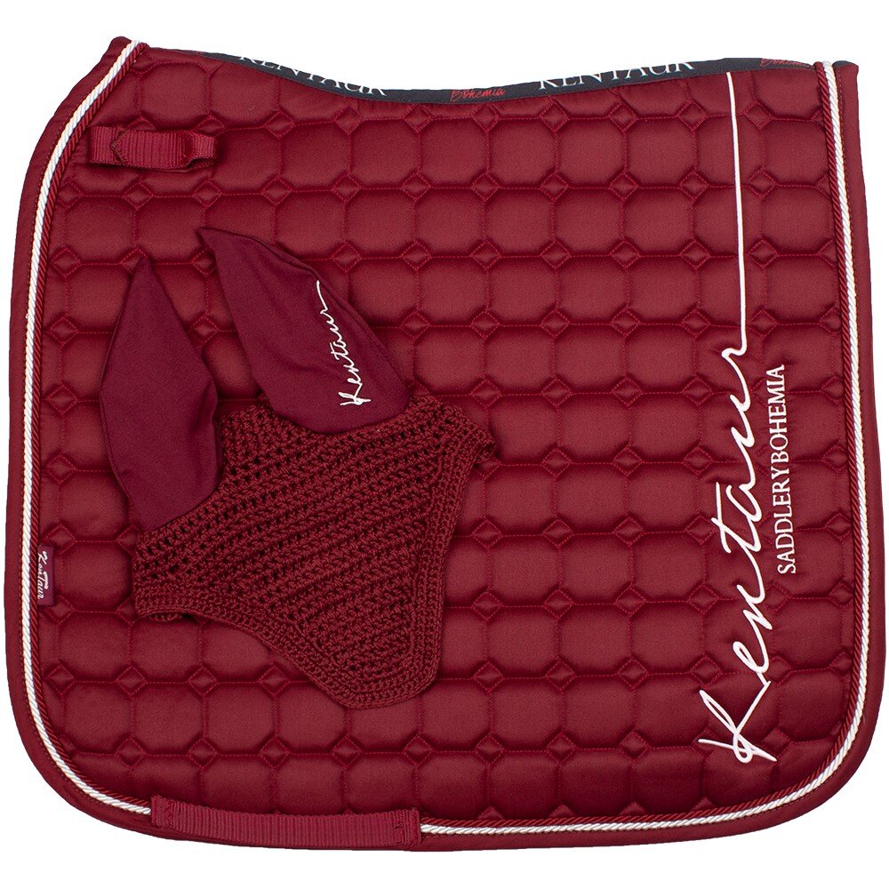 Drezurní dečka pod sedlo včetně barevně sladěné čabraky na uši. Dečka je lemovaná dvojitě kroucenou ozdobnou paspulkou. Spodní materiál z hi-tech materiálu, který výborně absorbuje a odvádí pot od koně.