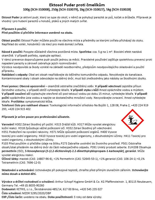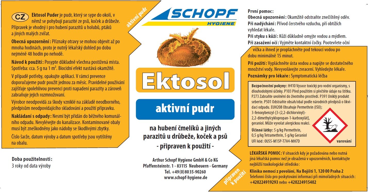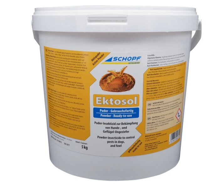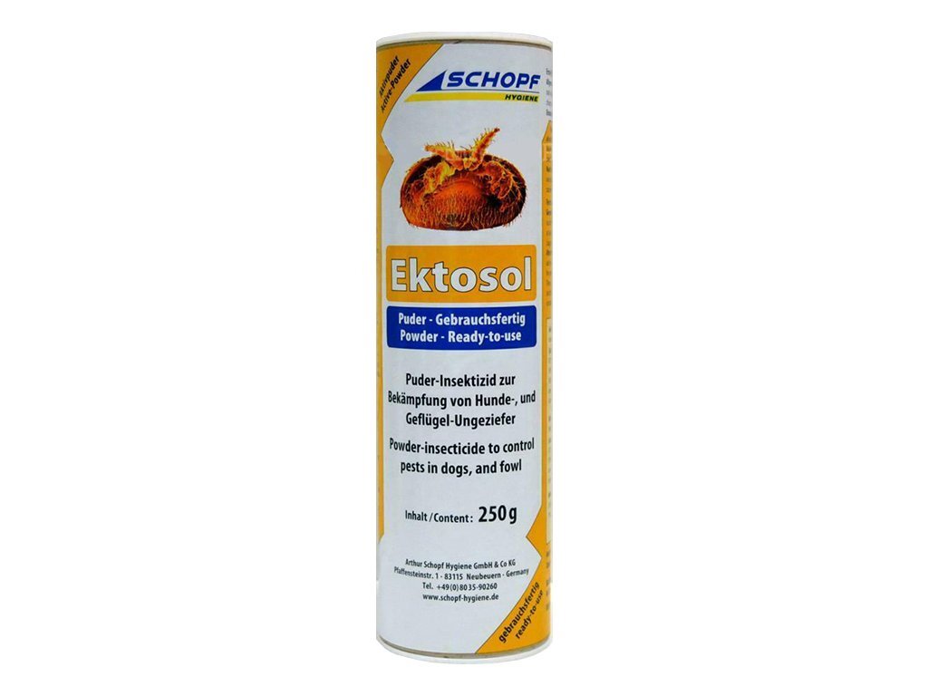 Ektosol je pudr, který se sype do okolí, v němž se pohybují parazité ze psů, koček a drůbeže. Je možné jej použít na všechna místa a předměty se kterými zvířata přicházejí do styku, například do voliér, holubníků i do klecí pro malá domácí zvířata. Pravidelná aplikace zajišťuje bezpečnou ochranu proti napadení.