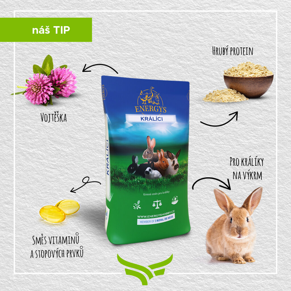 Prémiová krmná směs ideální svým složením pro březí a kojící samice. Pro intenzivní výkrm králíků do období min. 5 dnů před porážkou.
