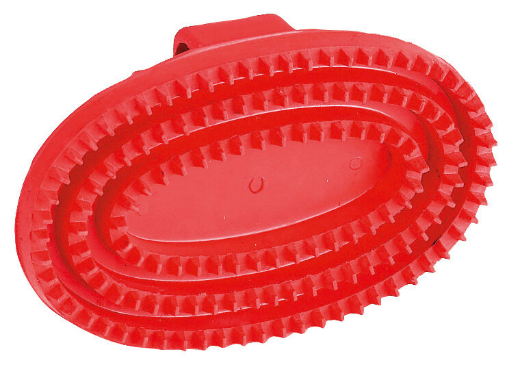 Tvrdé gumové hřbílko vhodné na čištění koní od hrubých nečistot.