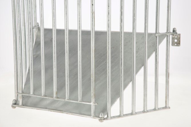 • horizontální otvor na základně zabraňuje hromadění zbytků krmiva na podlaze a usnadňuje úplné vyprázdnění a čištění koše