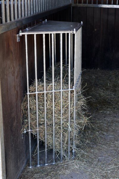 Stabilní stojan se seno s postupným uvolňováním a posouvání sena vhodné pro koně se zažívacími problémy. Díky blízko u sebe umístěným šprušlím se kůň dostává k senu pomaleji, jí déle a to napomáhá zažívacímu ústrojí.
