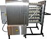 Jogurtovač vychází konstrukčně z oblíbených parních varných komor řady UNIPAR a je zařízením s elektrickým topením a chladící jednotkou, řízené nastavitelným časem a teplotou v pracovní komoře. Jogurtovač J3 je určen k fermentaci mléčných kultur ve sklenicích, které se vyrovnávají na zavážecí vozík. Jogurtovač J3 je sestaven ze dvou hlavních částí, fermentační/chladící komory a vozíku s výsuvnými platy. Zařízení je vhodné pro výrobu farmářských jogurtů. Pracovní cyklus spočívá v ohřátí jogurtů na požadovanou teplotu a její udržení po nastavený čas. Po uplynutí nastaveného času se spustí chlazení komory. Velkou výhodou tohoto zařízení je, že po fermentaci se s jogurty nehýbe a jsou bez manipulace ochlazovány. Tím je docíleno vyšší kvality jogurtů. Obsah dodávky: - vlastní komora 1 ks - zavážecí vozík 1 ks - plato s okrajem 6 ks Technické parametry Rozměry: (šířka x hloubka (vč. zasunutého vozíku) x výška) 1100mm x 1220mm x 1500mm Rozměry vozíku: (šířka x hloubka x výška) 785mm x 850mm x 1500mm Rozměry úložného plata: 650 x 530 x 20 mm Celková úložná plocha: 6 x 0,34 m2 = 2 m2 Pracovní teplota: nastavitelná 10 až 60 °C Jmenovité napětí 1N~: 230 V / 50 Hz Jmenovitý příkon maximální: 3 kW Doba pracovního cyklu: nastavitelná od 1 minuty do 99 hodin 99 minut Celková hmotnost: 310 kg