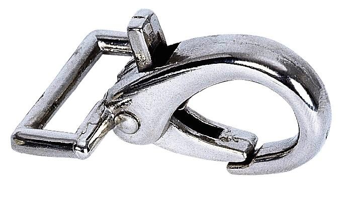 Nerezová karabina vhodná na lonž, vyvyzovací otěže nebo lonžovací spojku• nerezová karabina