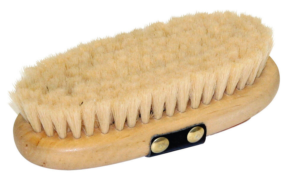 Oválný kartáč s přírodním kozím chlupem zajišťuje perfektní lesk. Vhodný na finální dočištění.• dřevěné lakované tělo