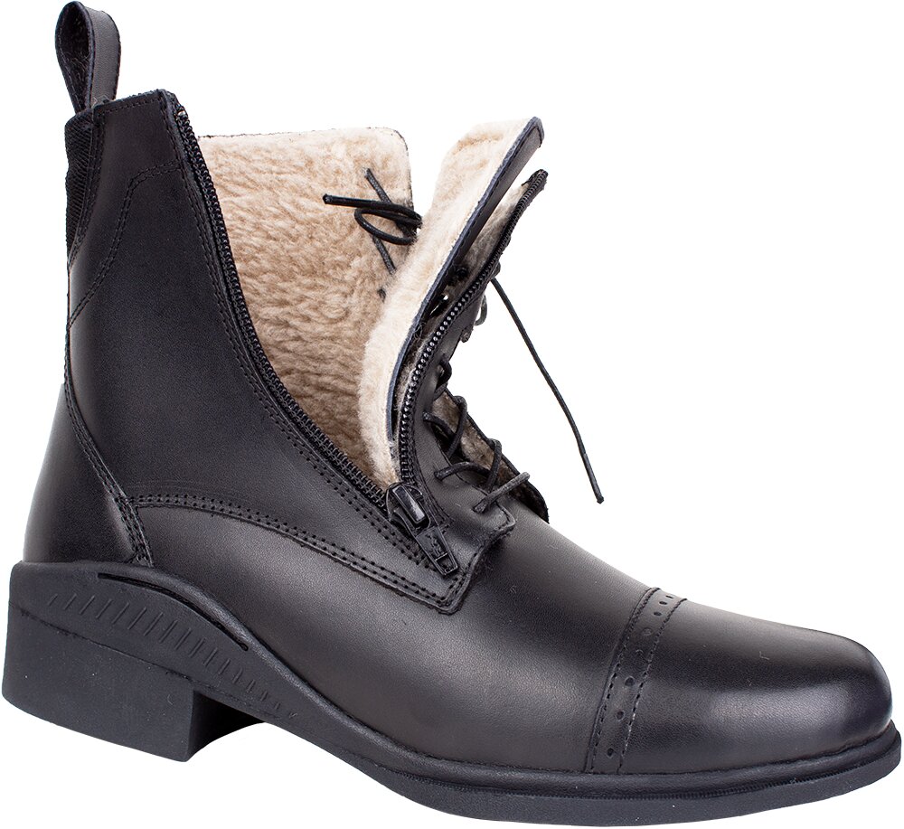 KenTaur téli jodhpur cipő oldalsó cipzárral és bárányszőrrel, fekete