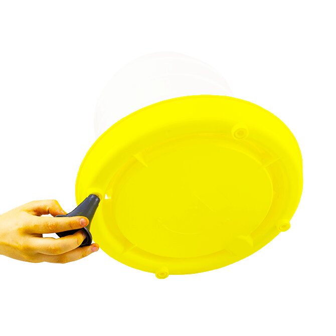 Kézi műanyag itató felültöltővel, 15 l, sárga lábakkal