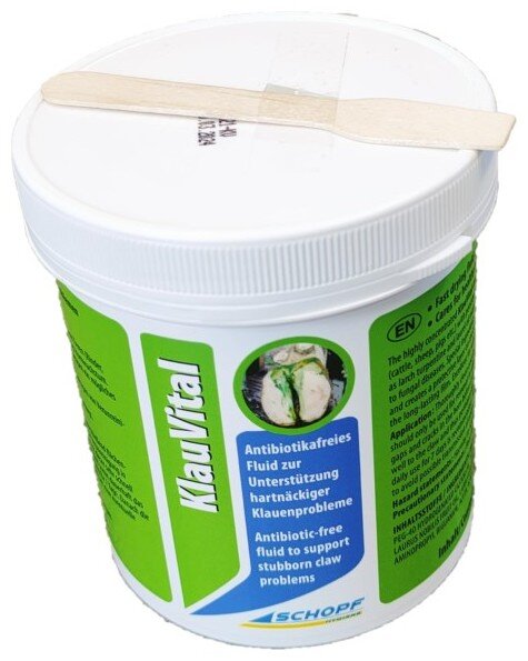 A KlauVital egy speciális balzsam patákra, csülökre és kérgesedett bőrre, amely védőréteget képez és támogatja a szaru egészséges növekedését. Magas ápolóanyag-tartalmának köszönhetően hozzájárul a stresszes paták és csülök regenerálódásához és védelméhez a külső hatásokkal, például a nedvességgel, a szennyeződéssel vagy a mikrobiális terheléssel szemben.