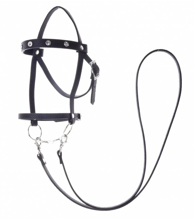 Kompletní uzdečka pro hobby horse LarDen z koženky, s kamínky, vel. M