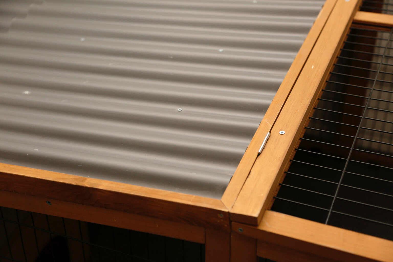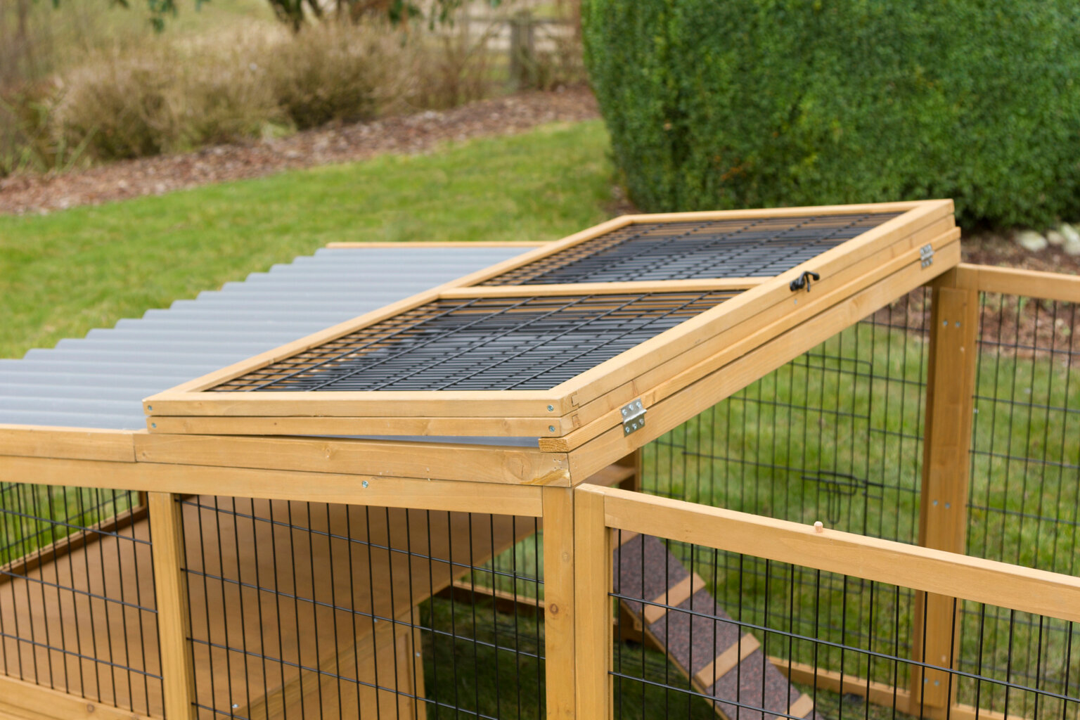- Otevírací střecha – snadný přístup pro krmení, údržbu a kontakt se zvířaty