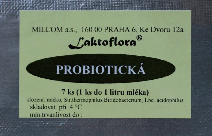- mlékařská kultura Laktoflora® - balení obsahuje: 7 sáčků kultury (přímé očkování 7 x 1 l mléka) - vhodné i pro jogurtovače Charakteristika a využití: Probiotická kultura obsahuje mikrobiální kmeny Str. thermophilus, Bifidobacterium a Lbc. acidophilus. Probiotická kultura se prodává v balení po sedmi sáčcích v jednom balení. Jeden sáček probiotické kultury je určen pro zakysání jednoho litru mléka. Jedná se o kulturu, která je vhodná pro úpravu střevní mikroflóry. Doporučená denní konzumace probiotického mléka je 150 – 200 ml denně na osobu, ideálně rozdělenou do dvou dávek, po dobu dvou týdnů. Tuto kulturu NELZE PŘEOČKOVÁVAT! Po případném přeočkování již výrobek neobsahuje požadované počty probiotických mikroorganismů.Zákazníci hodnotí