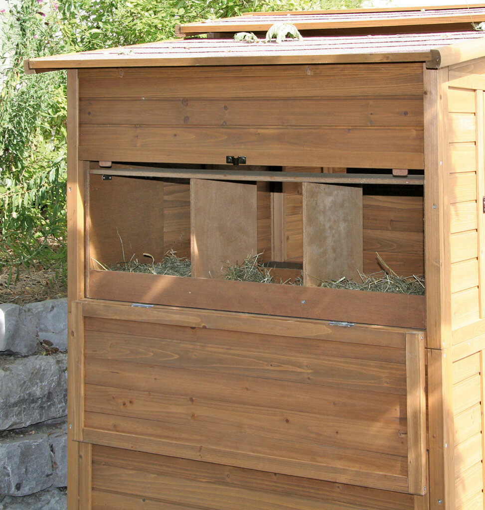 • příslušenství: 3 kukaně v každém poschodí, s možností přístupu zvenčí, rampa, 2 tyče ve výběhu, poplastovaná podlážka na výkaly