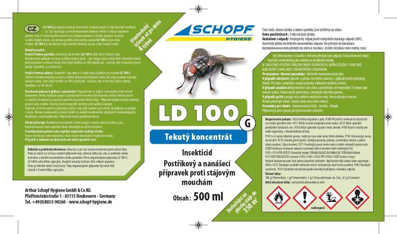 LD 100G/B• tekutý koncentrát k bezpečnému hubení much ve stájích