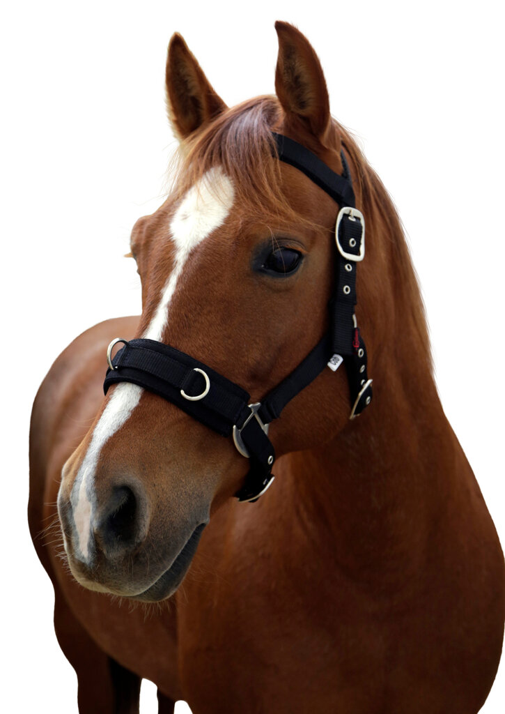 Lonžovací ohlávka s měkce podloženým a širokým nánosníkem se třemi kroužky. Nátylník, podhrdelník i nánosník jsou nastavitelné. Masivní, nerezové kování jsou odolné proti opotřebení.• používá se k lonžování a pro výcvik koně