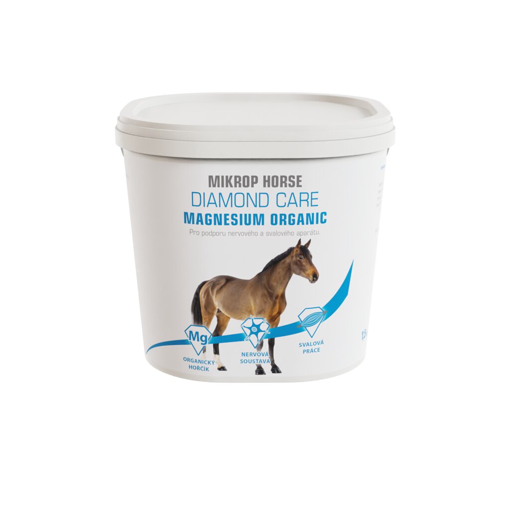 MIKROP® HORSE DIAMOND CARE MAGNESIUM ORGANIC je doplňkové krmivo pro koně s obsahem kombinace organického i anorganického hořčíku a vitaminu B1 pro podporu vitality nervové a svalové soustavy.