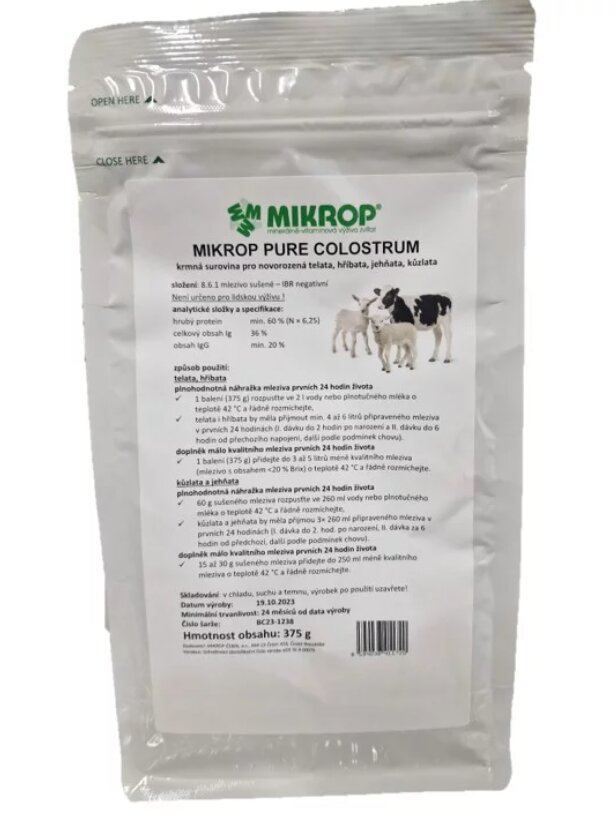 Mikrop Pure Colostrum je vynikajícím prostředkem pro chovatele, kteří se krátkodobě či dlouhodobě potýkají s nízkou imunologickou kvalitou získaného mleziva. V případě chovů dojeného skotu, považujeme za mlezivo nízké kvality takové, jehož hodnoty Brix jsou <21 %. Přidáním sušeného mleziva Mikrop Pure Colostrum do 4 až 6 litrů mleziva nízké kvality, chovatel získává vysoce jakostní a velmi imunologicky hodnotné mlezivo, která zajistí telatům, kůzlatům či jehňatům adekvátní příjem protilátek, zdraví a růst.