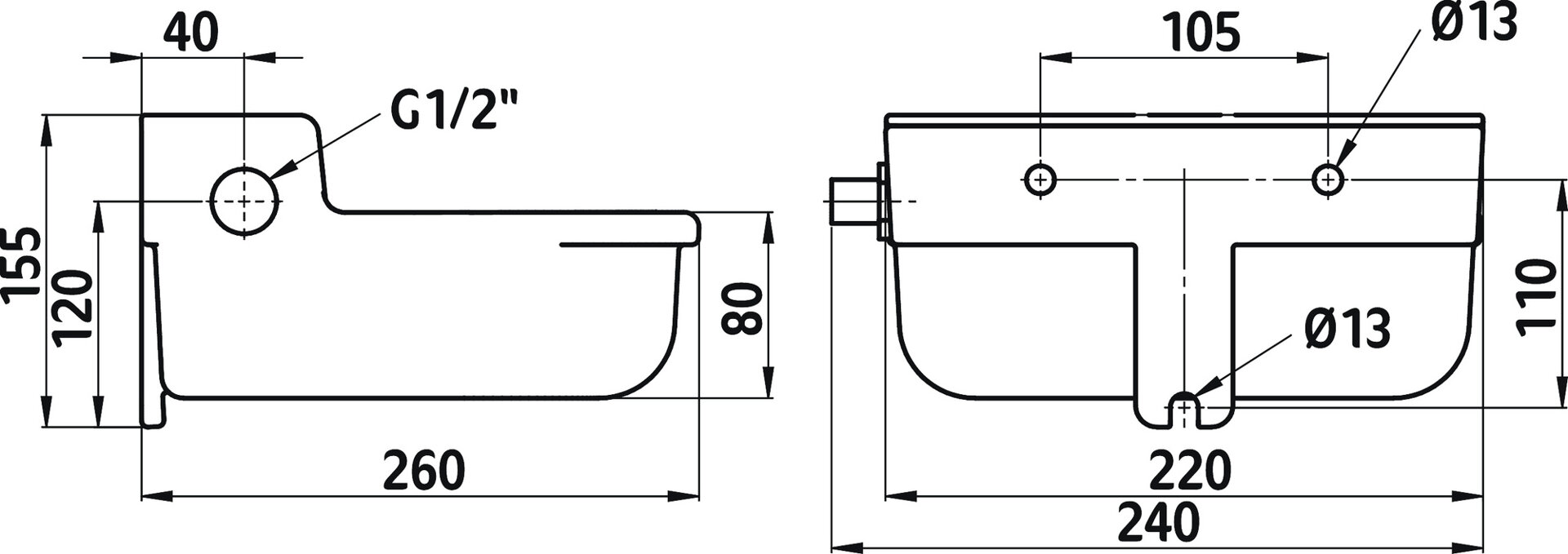 • 1/2 "připojení pro vysokotlaký plovákový ventil (22192) z obou stran