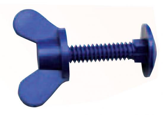 Műanyag csavar szárnyas anyával - kék hosszú 90mm