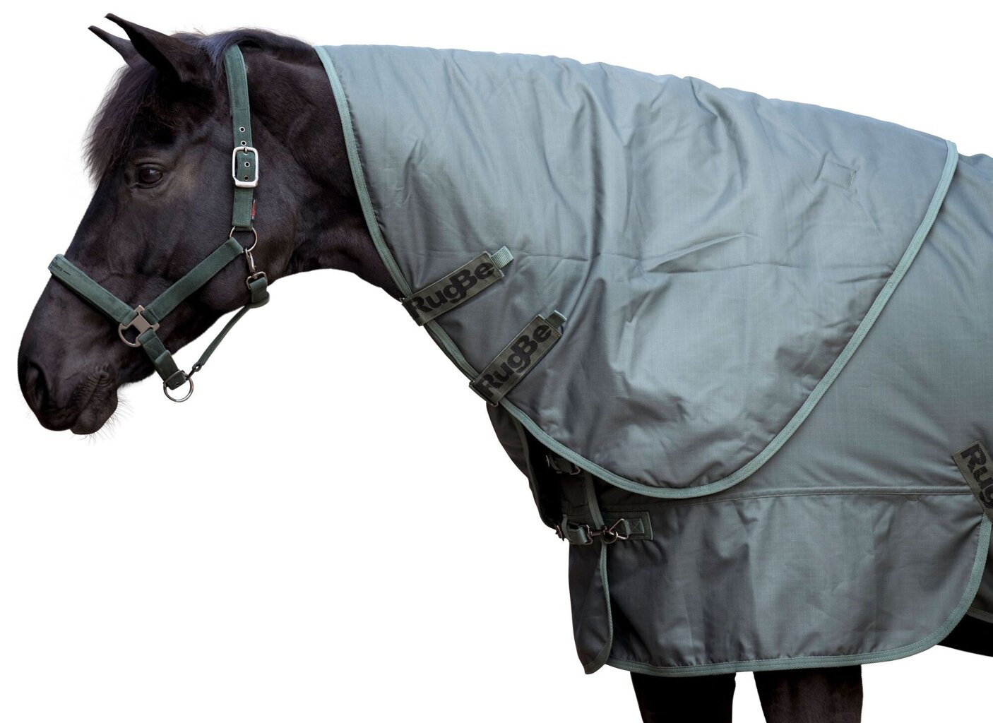 Zateplený krční díl k zimní dece RugBe 300 jednoduše připnete k dece po obou stranách pomocí úchytů se suchým zipem.