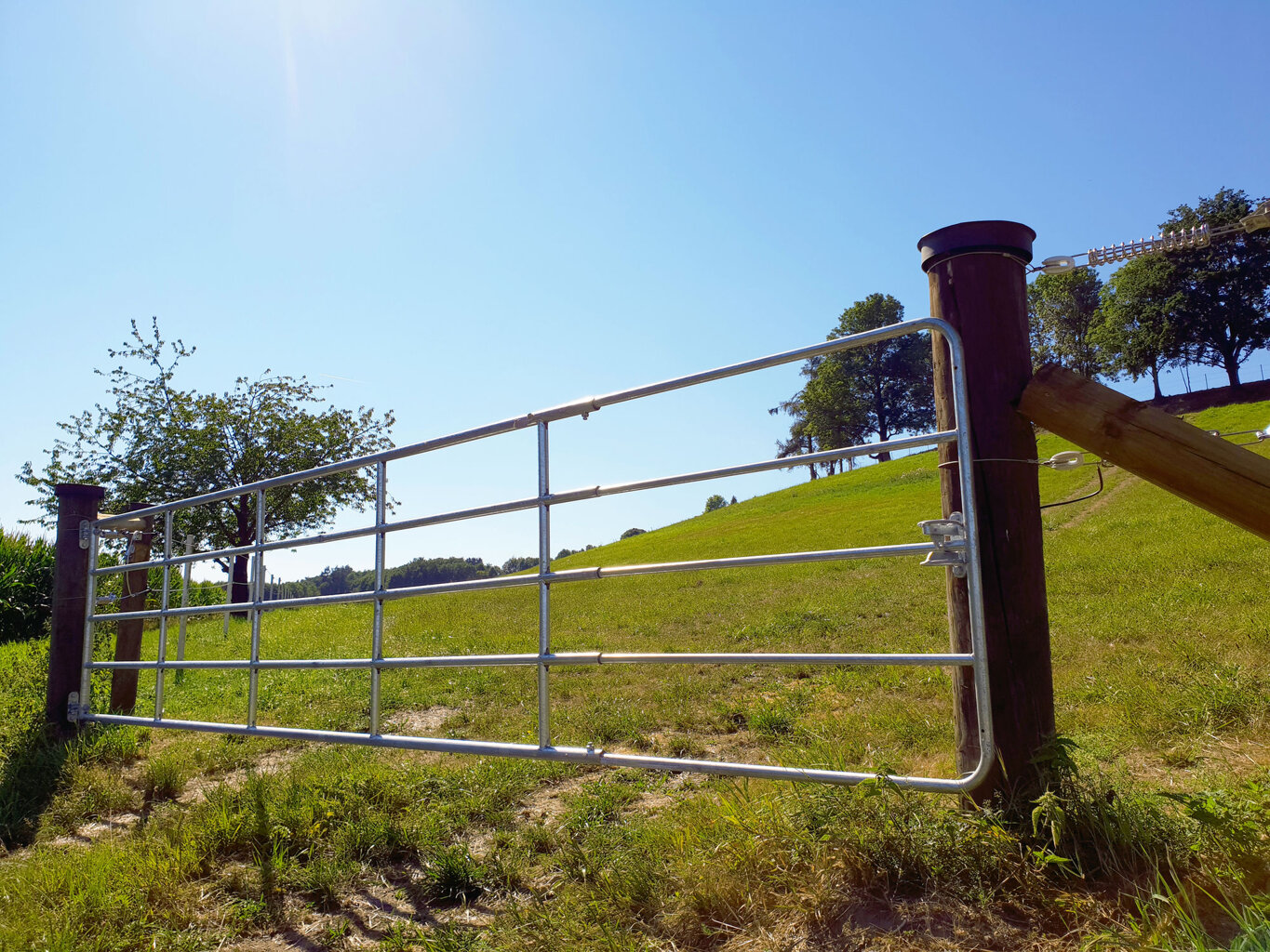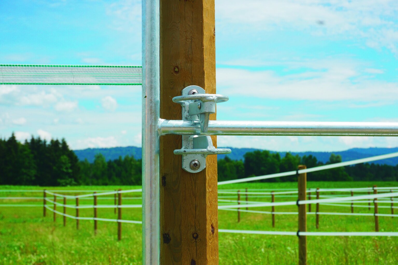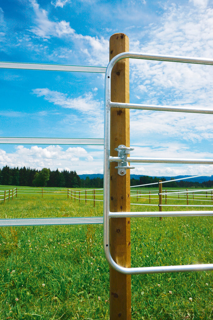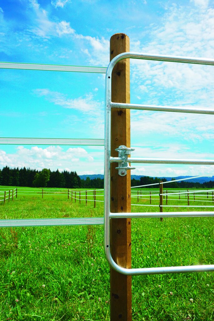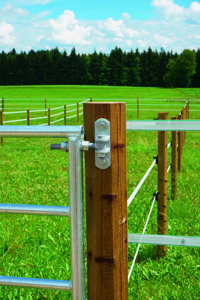 • stabilní ohrada z pozinkované oceli, včetně instalační sady (2x závěs + 1x zavírání + 6 vrutů do dřeva 12x80mm)