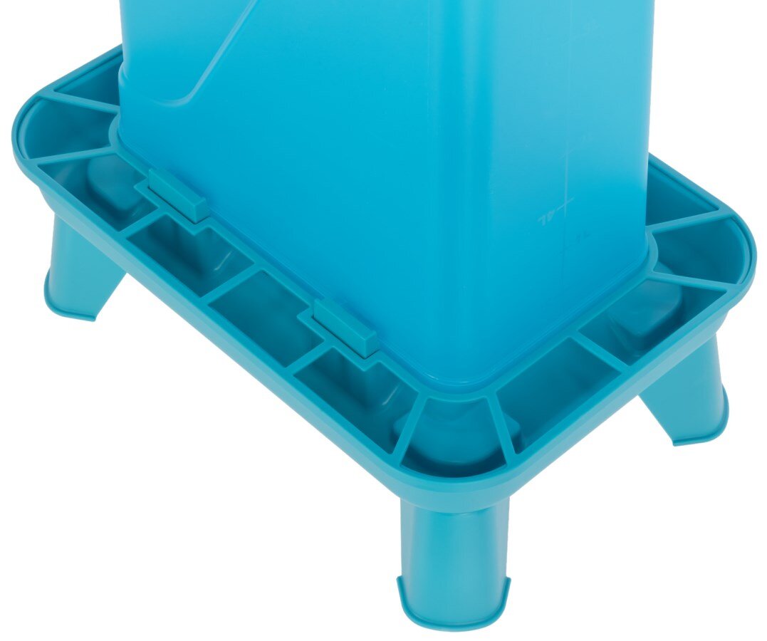 - Stabilní a čisté: dodávané nožičky zaručují stabilní postavení krmného systému. Zároveň je krmivo chráněno před znečištěním, což zvyšuje hygienu ve stáji a na zahradě.