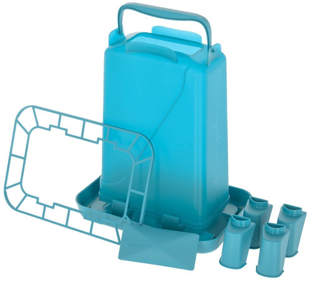 - Snadná manipulace: odnímatelné víko usnadňuje plnění nádoby na krmivo pro drůbež. Rukojeť také usnadňuje přepravu krmítka.